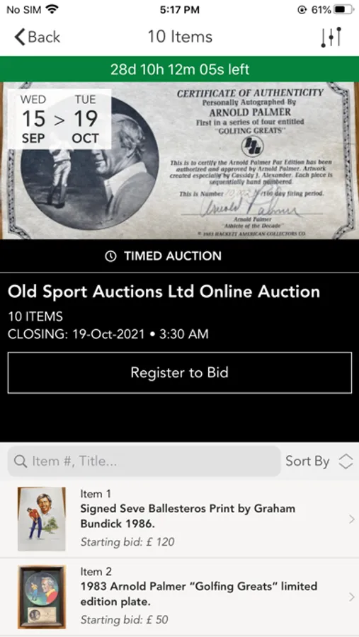 Old Sports Auctions Ltd is a company which has evolved as the primary internet auction site for handling the sale and purchase of sporting memorabilia especially golf memorabilia. The success of internet trading has created the demand for a high quality, knowledgeable supplier to satisfy the needs of the discerning collector. With the Old Sports Auction app, you can preview, watch and bid in our auctions from your mobile / tablet device. Participate in our sales while on-the-go and gain access to our following features: Quick Registration Following upcoming lots of interest Push notifications to ensure you engage on items of interest Track bidding history and activity