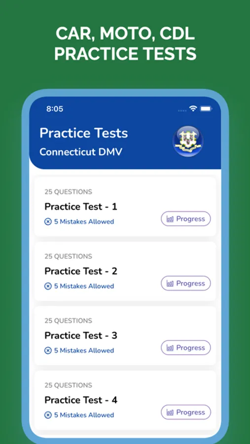 This app includes questions based on official Connecticut DMV state manual. The app allows you to prepare and practice for the Car, Motorcycle and Commercial Driving license (CDL) driver’s license test for Connecticut State and all practice tests are based on the latest manuals. So if you are searching for DMV driver’s license test 2023 preparation – this is the perfect DMV driver’s license test practice app for you. This app is a driver's license handbook manual to practice and prepare for DMV Knowledge Test Permit.