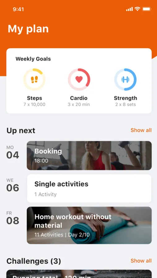 Sie können diese App mit der Apple Health App synchronisieren. Wenn Sie diese Übertragung aktivieren, wird jedes Training aus der Health App automatisch zu Ihrem Aktivitätskalender hinzugefügt.