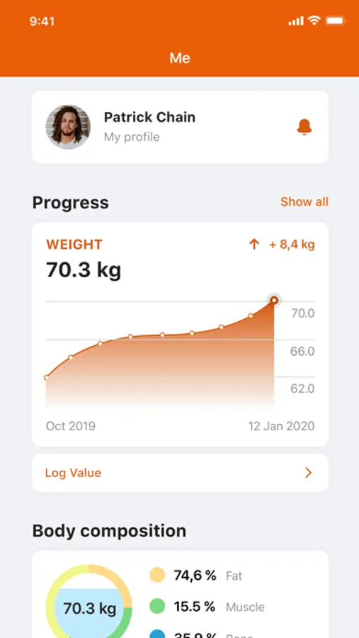 Sie können diese App mit dem Apple Health App synchronisieren. Wenn Sie diese Übertragung aktivieren, wird jedes Training aus der Health App automatisch zu Ihrem Aktivitätskalender hinzugefügt.