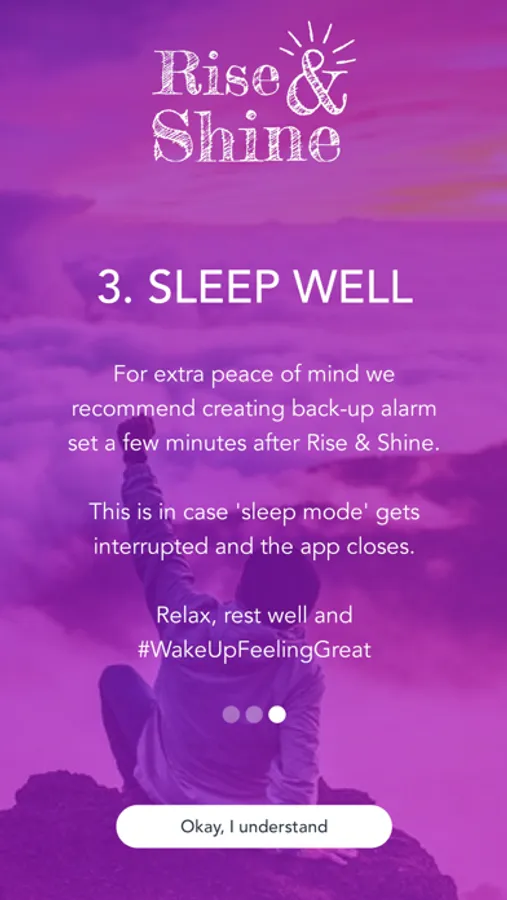 We strongly recommend setting a back up alarm, set for 10 mins after your Rise & Shine wake up time, using your phone’s native alarm app.