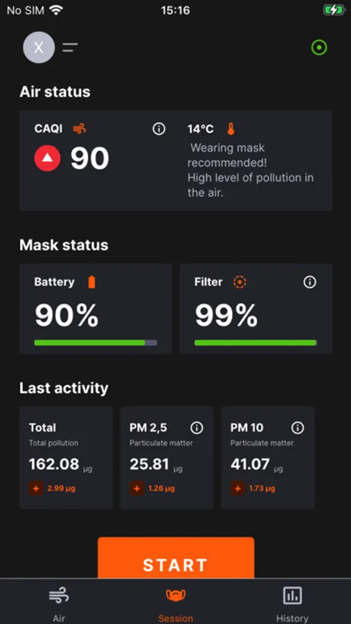 Using data from the Airly sensor network, the application will provide you with reliable data on your area’s air quality. The app will alert you when and why it is necessary to put on a mask. You will also be able to see the amount of harmful substances you have avoided while wearing your Urban'er PRO+ mask. By making a detailed analysis of the respiratory rate and the measured pollution level during each session, the app will calculate the filter wear and notify you when the filter needs to be replaced.