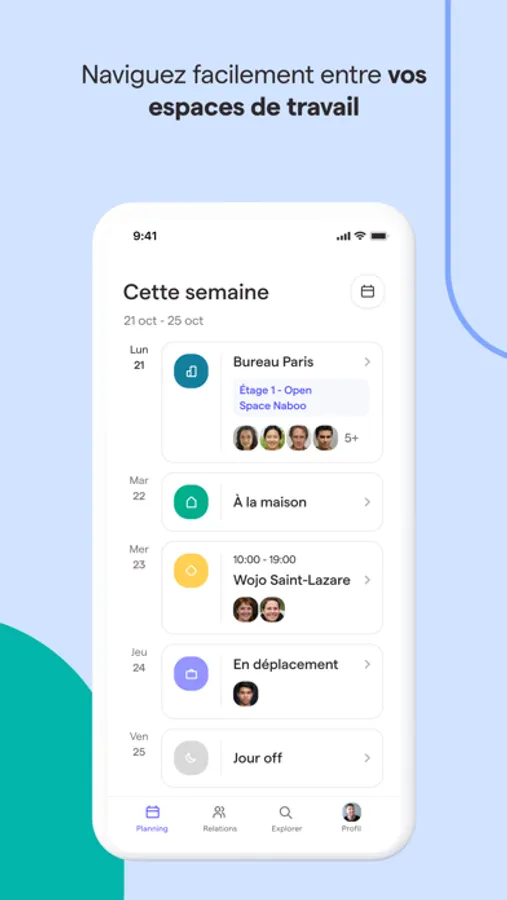 Worklib vous aide à planifier votre semaine en fonction de vos modes de travail, des habitudes et contraintes de votre équipe, de votre agenda personnel.