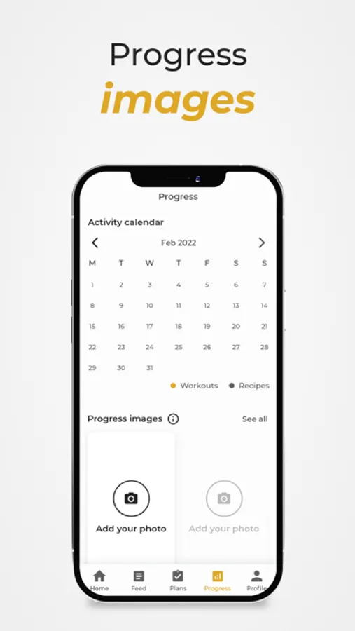 Take workout selfies. progress pictures, log weights you lifted, and see all you progress in your calendar.