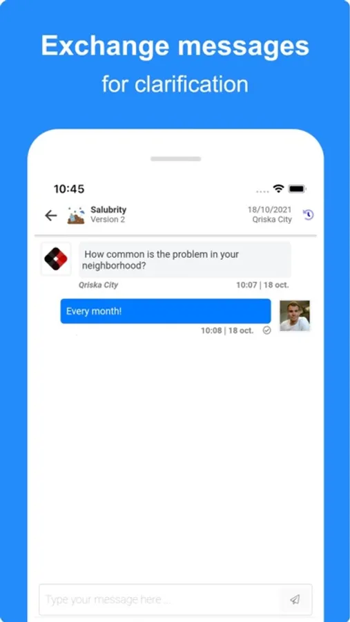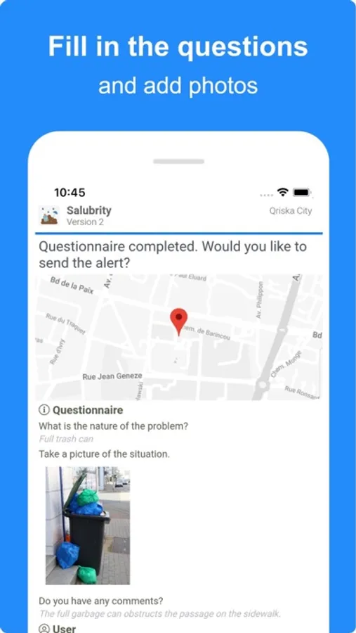 Send real-time geolocated alerts to authorities, your company or other organizations with Qriska Alert App. Answer questions and add photos or other media to illustrate situations. Stay informed of the evolving situation and exchange messages with operators.