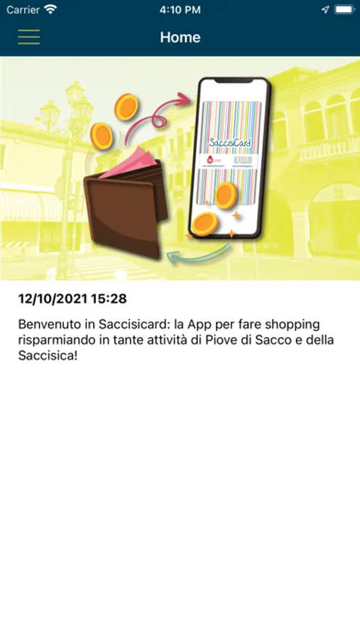 Saccisicard è una Fidelity App gratuita che ti permette fare shopping risparmiando in tante attività di Piove di Sacco e della Saccisica. Scarica l'App Saccisicard e ad ogni acquisto che farai, sarà caricato l’importo in euro (Cashback) dello sconto a te riservato, che potrai immediatamente utilizzare come fosse denaro contante per fare altri acquisti in tutte le attività del circuito.