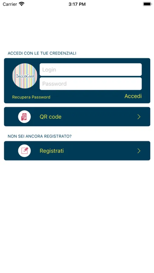 Se hai già la tua tessera Saccisicard, potrai scaricare l’App e inserire il Login e la password che hai ricevuto al momento della registrazione.