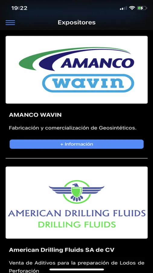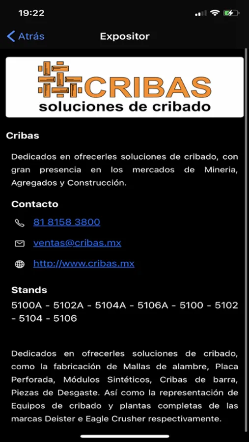 Con información relevante del expositor así como datos de contacto y área de exposición.