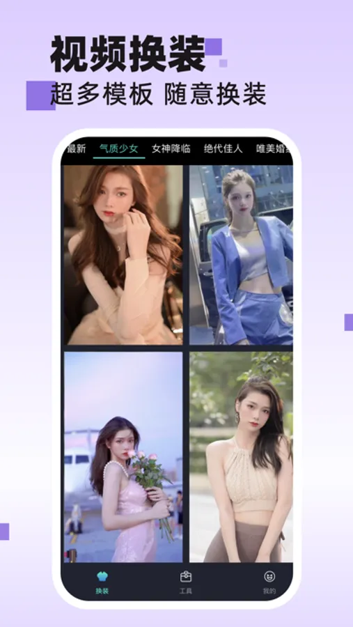 AI换脸是一款热门的智能ai换脸换装视频软件,你将会看到各种的视频特效换装视频模板,不管是古装古风汉服,56个民族服装、经典港风、旗袍美人,魅力男神,喜欢哪个都可以一键制作,只需要一张照片,即可生成各式各样的热门特效视频。用AI换脸,做一个丰富又好看的视频,只需要几秒钟,轻松一点马上生成热门特效视频!让你足不出户,轻松体验各类穿搭造型。