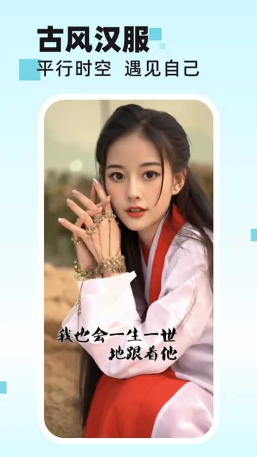 梦回古代,云裳羽衣,只需一张照片,即刻穿越感受华夏衣冠之美!唯美古风汉服,做个古装视频分享出去,马上让你的社交圈热闹起来,获得点赞无数