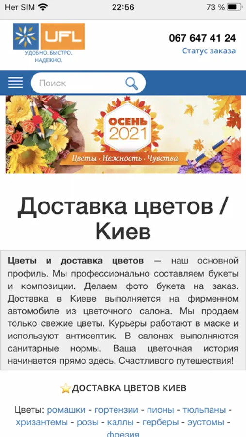 UFL — это крупная цветочная сеть, работающая c 2003 года на рынке доставки букетов и подарков. Наша миссия — доставлять счастье получателям, заказчикам и делать мир добрее с помощью цветов. Мы имеем представительства в Киеве, Львове, Одессе, Харькове. Мы уверены, что сможем выполнить доставку цветов на высоком уровне.