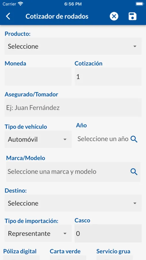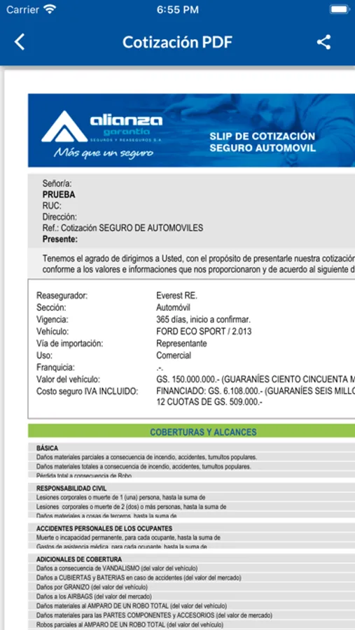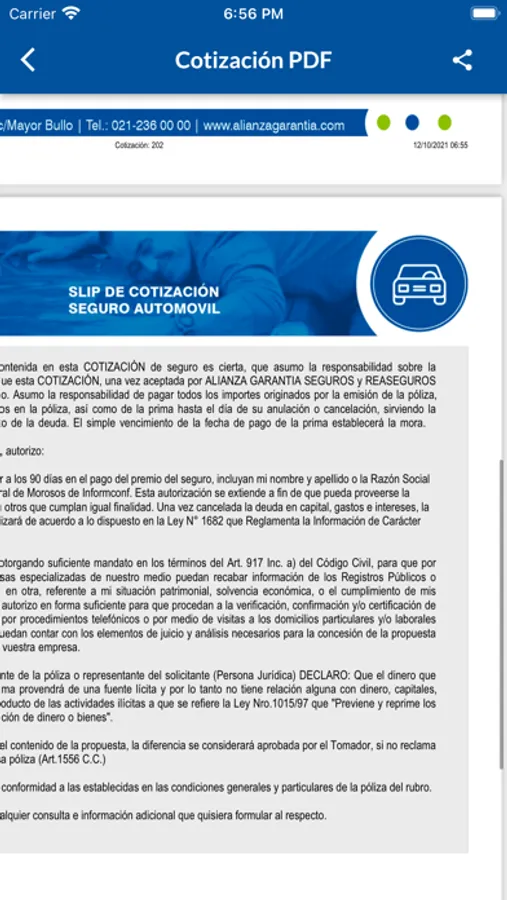 Aplicación movil de Alianza Garantía Seguros y Reaseguros S.A. de Paraguay para la cotización de seguros de rodados, de hogar, de negocios, seguros personales, accidentes, vida y salud.