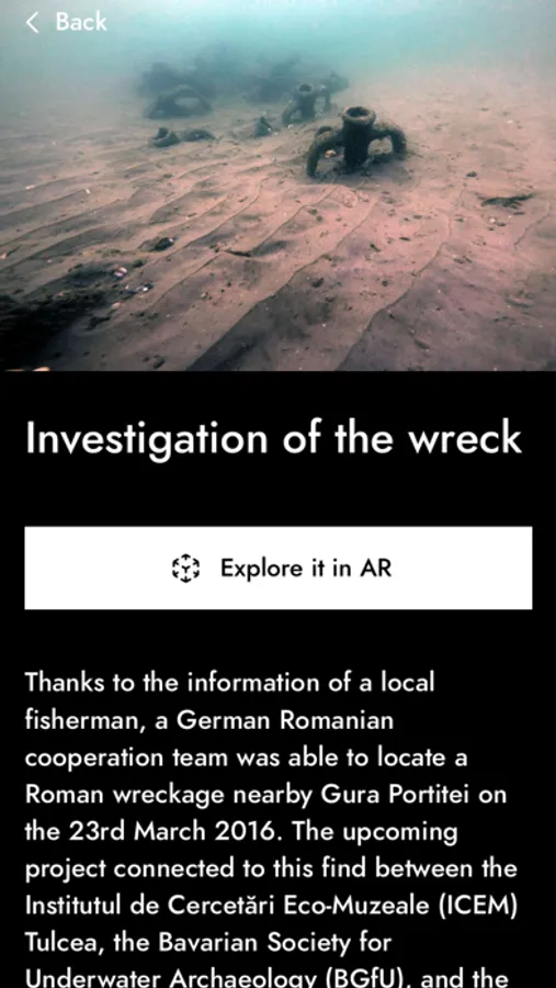 This app has been designed exclusively for the exhibition "Hin und Wieder Zurück - Ein Schiffswrack im Schwarzen Meer". It allows experiencing the exhibition's information even more immersively thanks to interactive augmented reality scenes. It is possible to explore a reconstruction of the Roman ship in miniature and playfully deal with the vessel's cargo. The app also offers the possibility to explore the larger framework of the Black Sea via an interactive map.