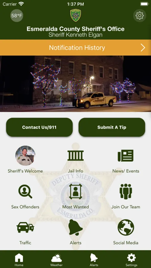 The Esmeralda County Sheriff’s Office mobile application is an interactive app developed to help improve communication with area residents. The Esmeralda County Sheriff App allows residents to connect with the Esmeralda County Sheriff’s Office by reporting crimes, submitting tips, and other interactive features, as well as providing the community the latest public safety news and information. The app is another public outreach effort developed by the Esmeralda County Sheriff’s Office to improve communication with county residents and visitors. This app is not intended to be used to report emergency situations. Please call 911 in an emergency.