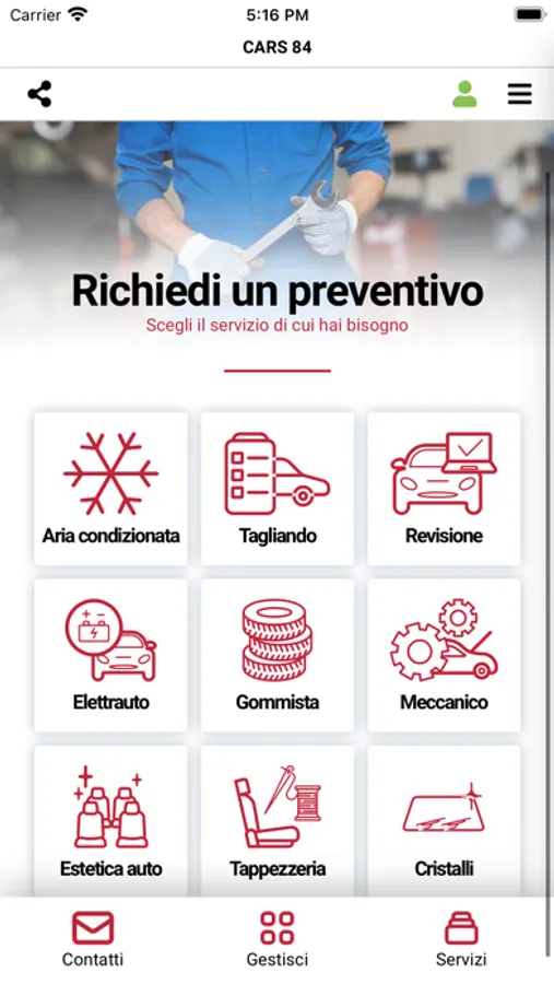 Attraverso Cars 84 potrai prenotare un appuntamento o richiedere un preventivo, proponendo direttamente una data di appuntamento alla tua officina di fiducia; inoltre potrai consultare le promozioni attive e prenotarti al prezzo più conveniente.