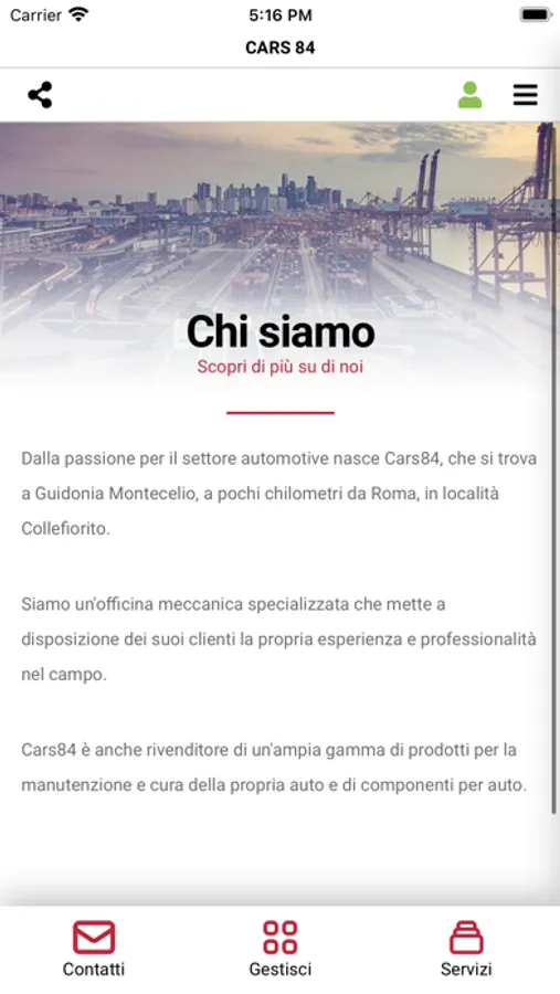 CARS 84 è una giovane azienda che opera nel settore automobilistico e si occupa della vendita di ricambi e accessori per ogni tipo di auto, effettuando revisioni, cambio gomme e riparazioni nella sua moderna officina a Guidonia.