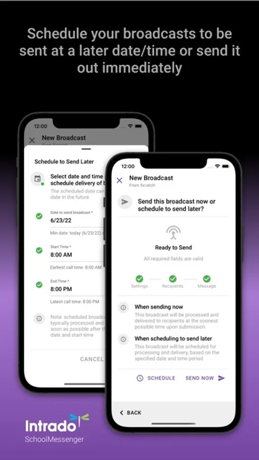 For school/district administrators, the easy-to-use app allows users to quickly create and send messages to one or more targeted SchoolMessenger Communicate notification lists. Requires WIFI or data plan for internet access. Requires SchoolMessenger Communicate service subscription.