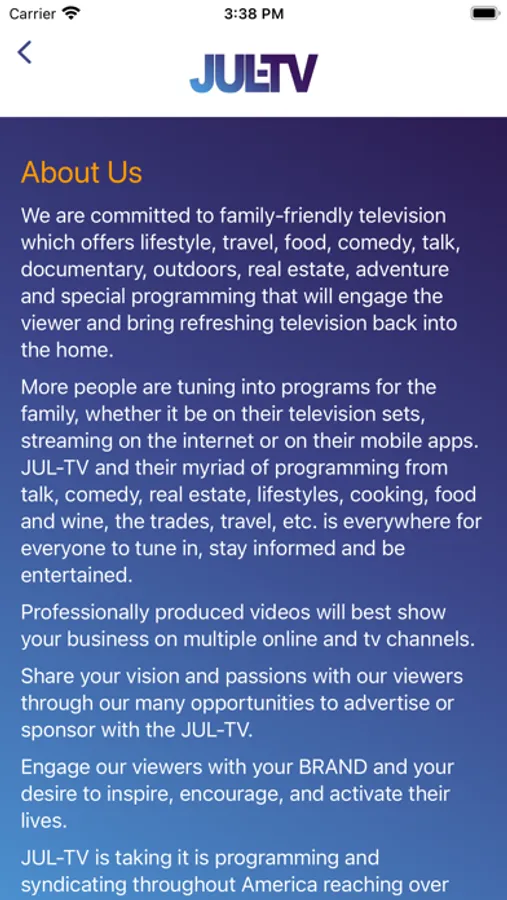 JUL-TV is taking it is programming and syndicating throughout America reaching over 50,000,000 households while maintaining its focus for television as well in social media and streaming. You can count on us to bring to America and globally, your products and services to new consumers.