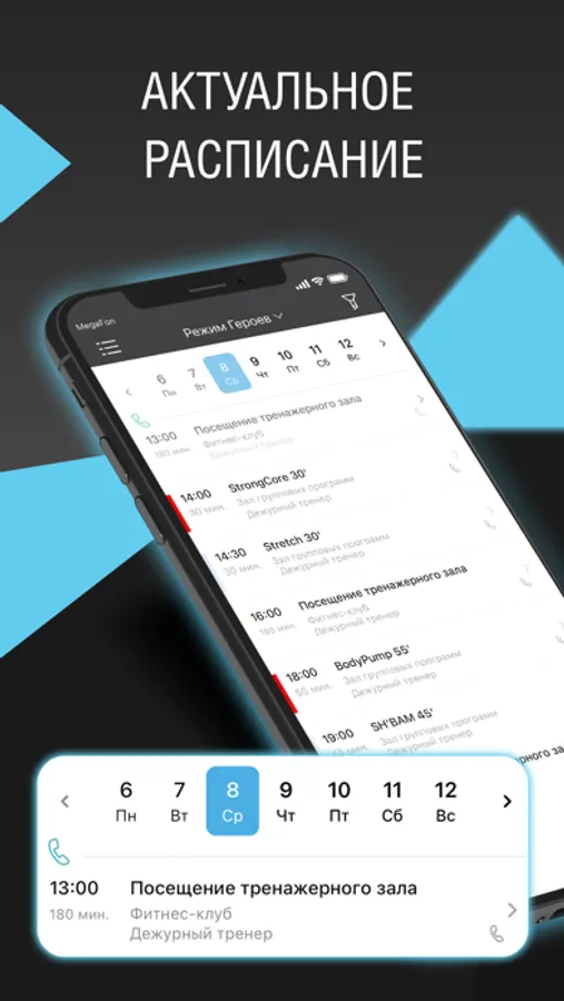 С помощью приложения вы можете следить за актуальным расписанием и записываться на тренировки, получать информацию об акциях и специальных приложениях и управлять членством в личном кабинете.