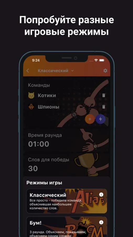 В игре доступны два режима: классический Alias, а также Alias Boom, также известный как Шляпа.