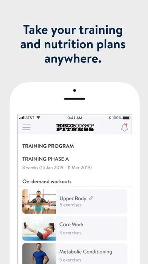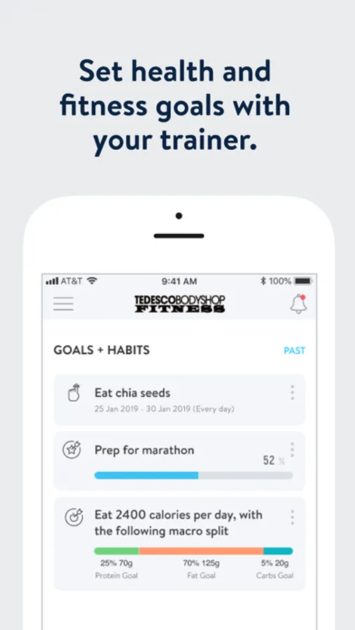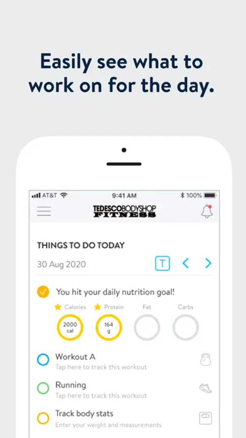 With the Tedesco Body Shop Fitness App, you can start tracking your workouts and meals, measuring results, and achieving your fitness goals, all with the help of your personal trainer.