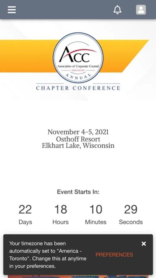 The ACC Wisconsin's Annual Conference App for 2021. Our Annual Conference and Meeting of Members is at the luxurious Osthoff Resort located in Elkhart Lake, Wisconsin. This 1½ day event is a great opportunity to network with fellow in-house counsel and earn valuable CLE credits. CLE programming is specifically designed for you as an in-house attorney.