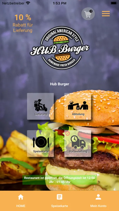 Herzlich Willkomen bei HUB Burger in Bergisch Gladbach. Wir bedienen unsere Kunden mit Snacks, Burger, Hot Dog Speisen und machen das seit mehreren Jahren aus Leidenschaft. Wir freuen uns immer wieder neue Kunden unsere Herkunft näher zubringen und möchten ihnen die Möglichkeit geben, ihre Bestellung unkompliziert und total einfach abzugeben. Aus diesem Grund, möchte wir ihnen unsere neue App und unseren Online Shop vorstellen, mit dem Sie problemlos über Paypal, Bar und Kreditkarte zahlen können.