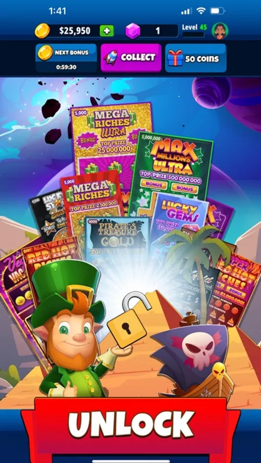 Join Lucky the Leprechaun on an exciting journey to reclaim his fortune. Dive into a world of thrilling scratcher games packed with exciting missions, hefty rewards, and a diverse variety of scratch cards. Scratch Quest is a must-have for casual gamers and lottery enthusiasts alike.