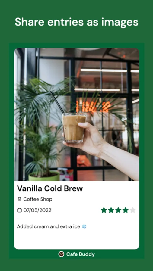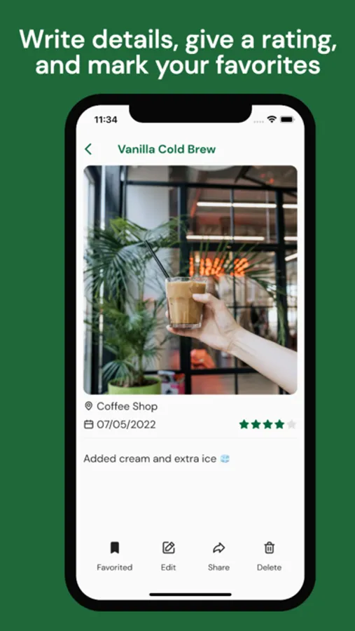 Log your favorite orders from restaurants, cafes, and more. Never forget your favorite orders again!