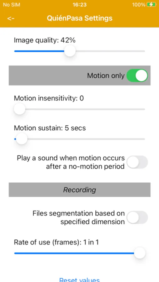 Detection of motion can indeed drive recording and/or acoustic alerts and the processing chain is adjustable as needed by the use of several options.