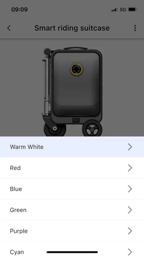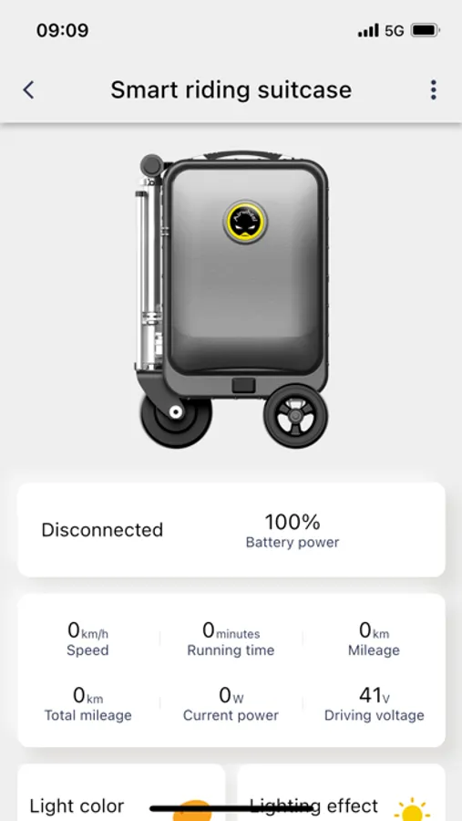Airwheel APP is the control software of the smart riding suitcase, which can be wirelessly interconnected with the smart luggage; it controls the lighting effects and light color of the smart luggage, and adjusts the speed according to user needs; the App can check the power, mileage, voltage, and personality of the smart luggage at any time Customized settings, etc., to enrich your fun experience.