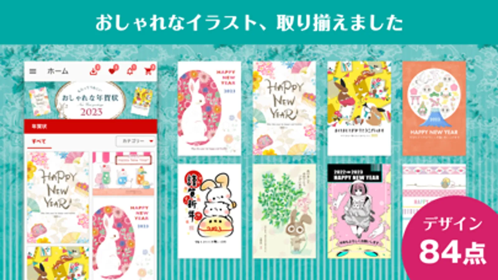 「もらってうれしい おしゃれな年賀状 2023」書籍版から、人気作家のデザインもご用意。