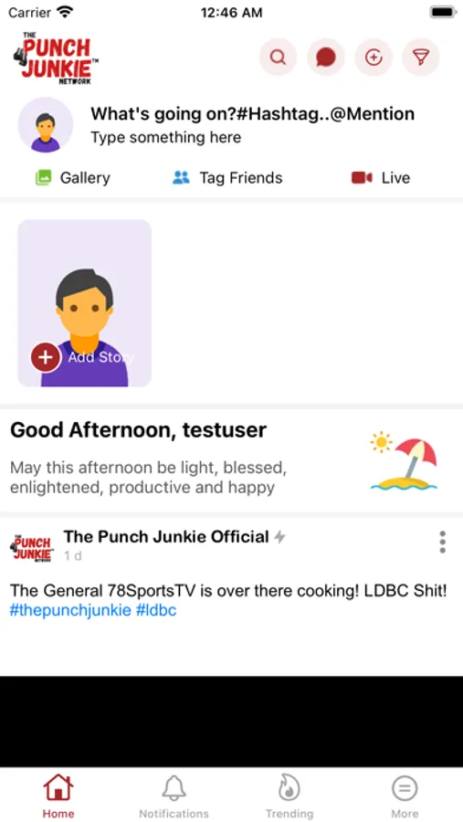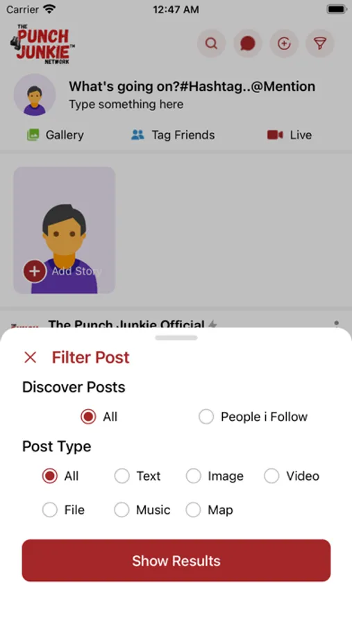 Features on The Punch Junkie™ Network mobile app include: * Connect with friends and family and meet new people on your social media network * Set status updates & use this platform to help relay what’s going on in your world * Share photos, videos, and your favorite memories. * Get notifications when friends like and comment on your posts * Find local boxing and social events, and make plans to meet up with friends * Follow your favorite boxers, pundits, and boxing personalities, websites, and companies to get their latest news * Watch live videos on the go