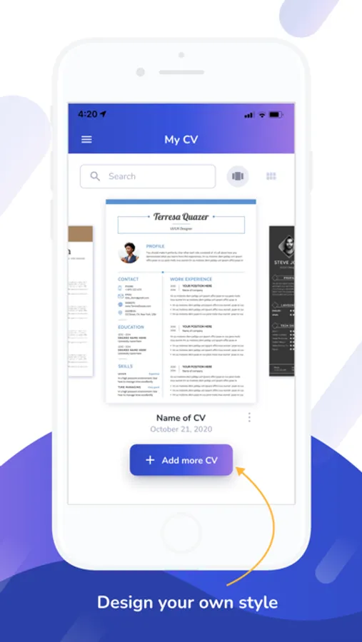 At the moment, we have standard CV templates for you with full features, or you can make it from scratch.