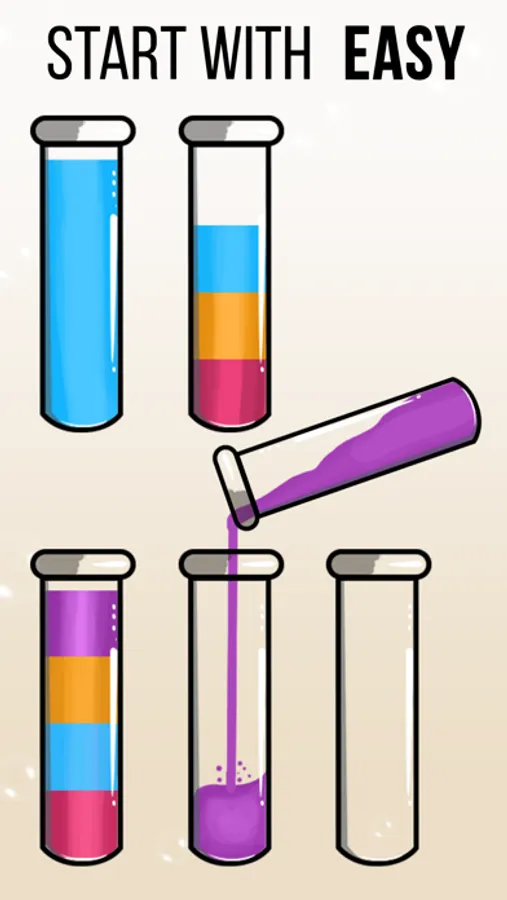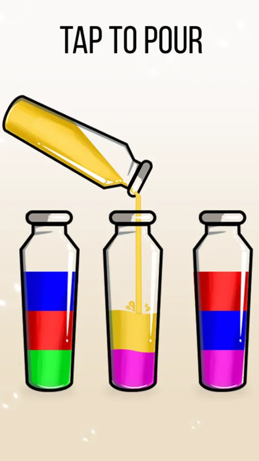 - Tap on one bottle to move any color and then tap on another bottle to pour the selected color on the top