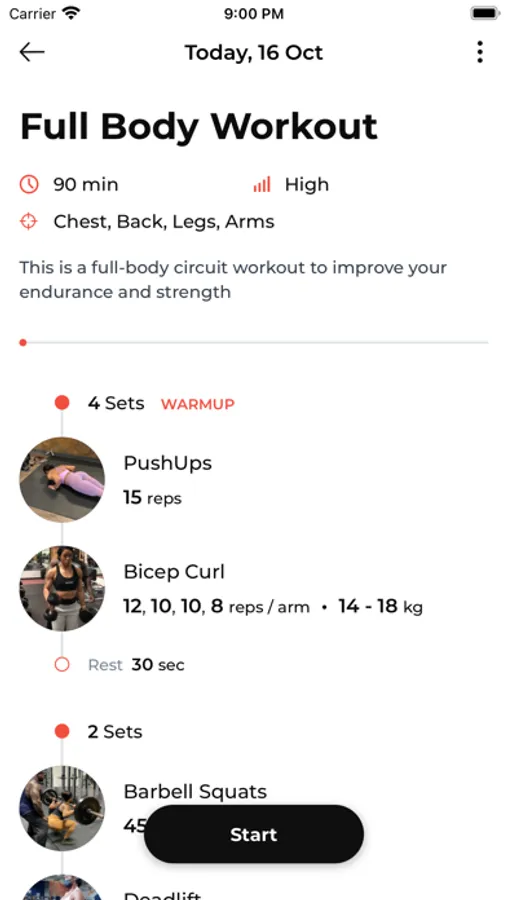 App also uses Apple Health to track energy burned and heart rate during a workout