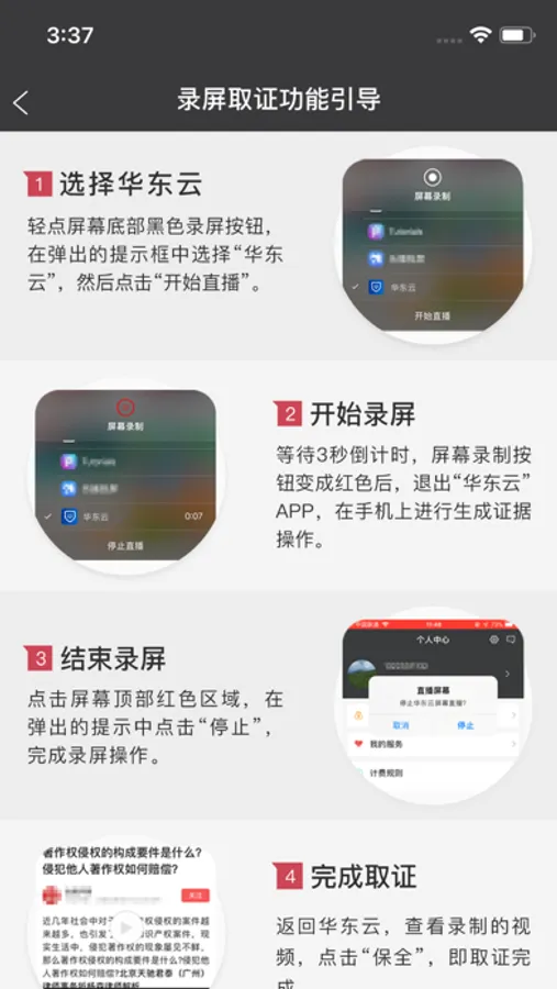 华东云提供在线取证、公证服务,区块链技术支持,证据可追踪,所采集的数据实时上传云端进行加密保存,永远不会丢失和被篡改,采用公安部用户身份信息识别系统,确认取证人员的真实主体身份信息。同时云端还保存取证时手机GPS定位的地理位置信息和由国家授时中心提供的标准时间,从而明确取证数据生成时间、地点的准确性,满足用户多样化取证需求。