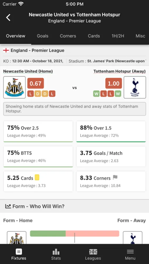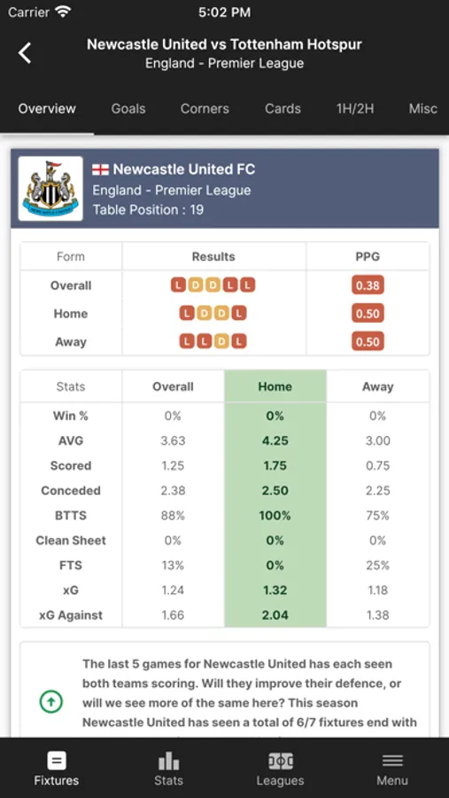 In-Depth Stats & Analytics such as goal averages, points per game, form, xG, player stats, and even more!