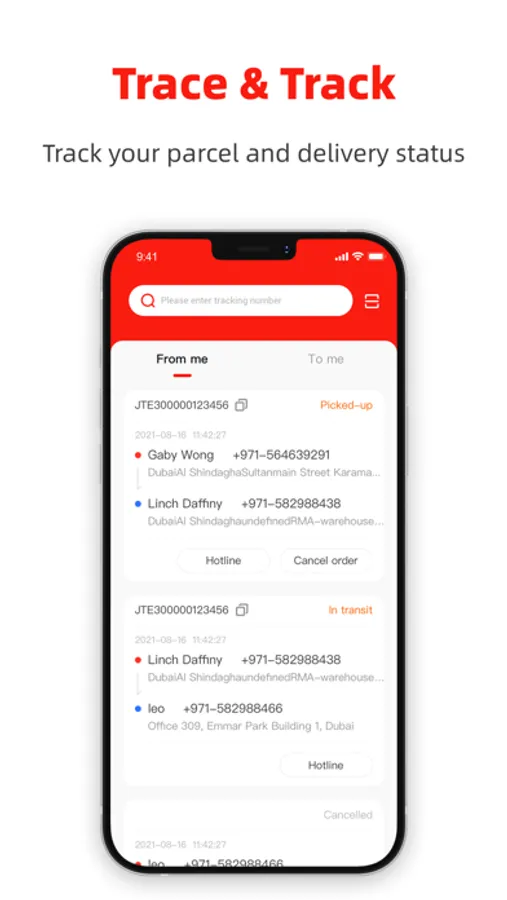 - Easily check of E-commerce items, business documents, large parcels, return and exchange delivery status.
