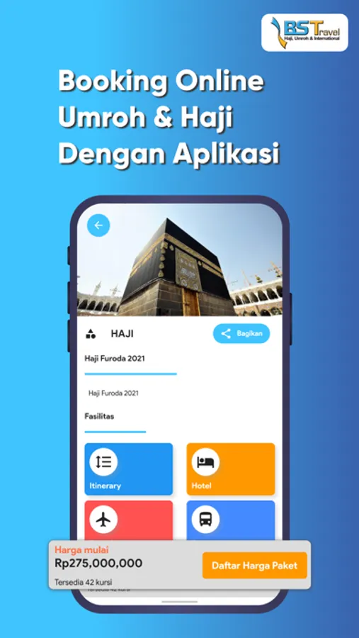 - Menampilkan detail paket umrah hinga itinerari, pesawat, hotel, dan bus