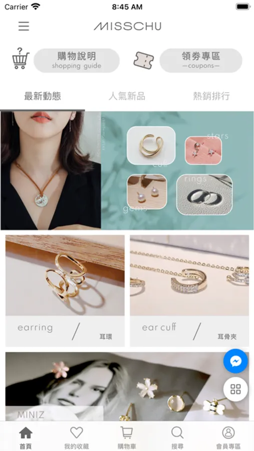 MISSCHU 為你提供多樣化的質感小物,從耳際到髮梢、由觸覺至視覺。從耳環、戒指、項鍊到手鍊,我們的獨家設計與精選商品,讓飾品不再只是一個物件,而是讓人看過就想說一聲"Miss you"的代表物。更有多樣質感設計師創作與時尚穿搭解析,讓你走出屬於自己獨一無二的閃耀。