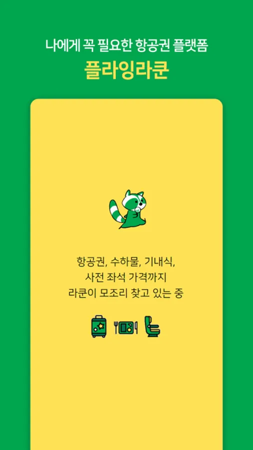 위탁 수하물, 기내식, 사전 좌석 지정, 반려동물 수속까지 당신이 선택한 항공권 최종가를 최저가로 추천 똑똑한 항공권 예약 앱 플라잉라쿤을 소개합니다.