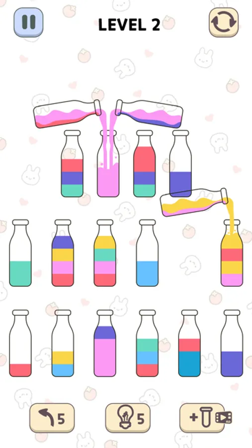 This colorful game seems easy but relaxing game - pouring water - to train your brain. The higher level you reach, the harder it gets since there are more tubes to arrange colors.