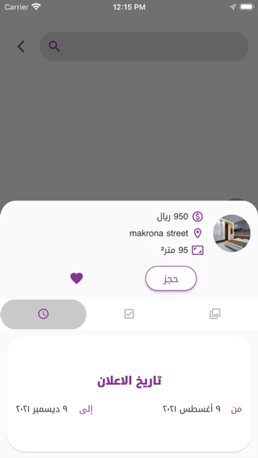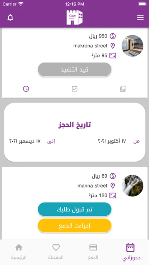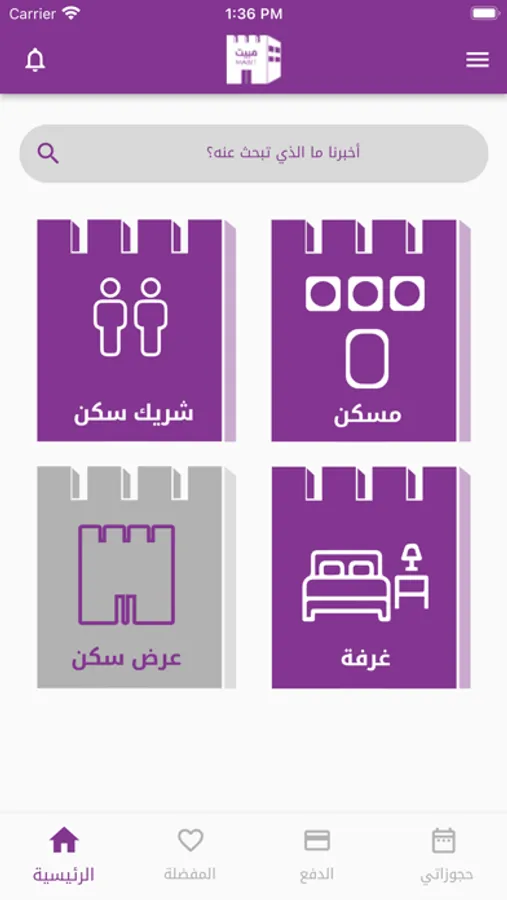يعرض للمستخدم صور المكان وكم يبعد و أسعار الايجار , يتيح للمستخدم تقديم طلب الحجز وعند قبول صاحب المكان يتم الدفع من خلال التطبيق