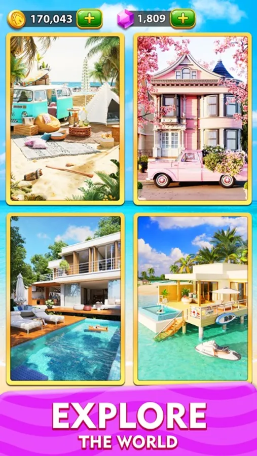 - Different scenes are available for you to decorate, villas, kitchens, swimming pools...and will be updated regularly, each scene will make you fall in love with this game.