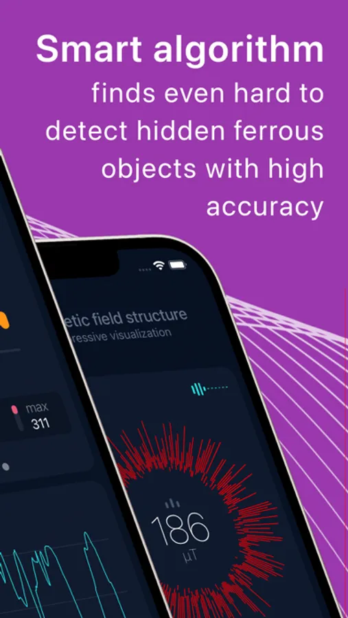 As you scan over a surface with your phone, a smart algorithm analyzes the smallest changes in the magnetic field and detects hidden ferrous objects with unprecedented accuracy.