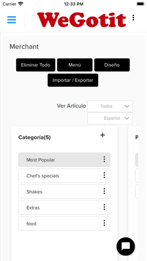 • Tendrás acceso para administrar tu menú de productos, podrás añadir, editar, desactivar productos de temporada y borrar productos.