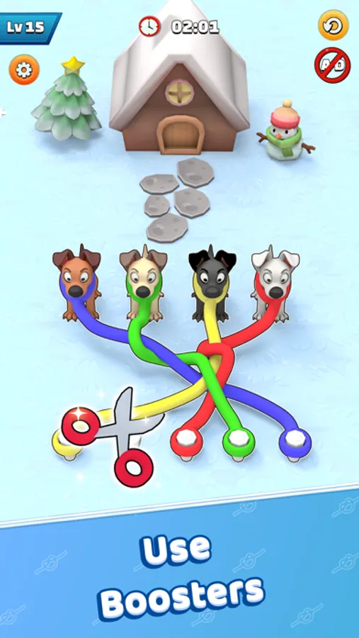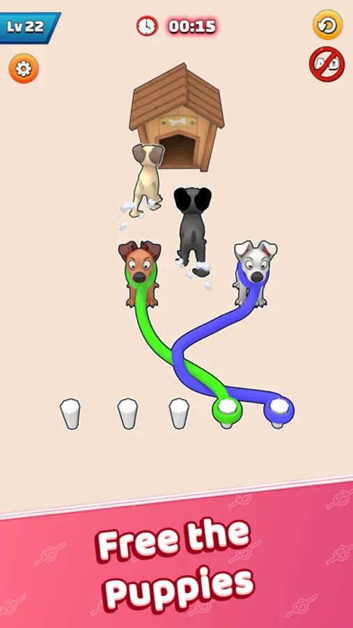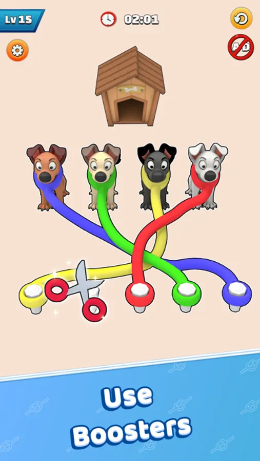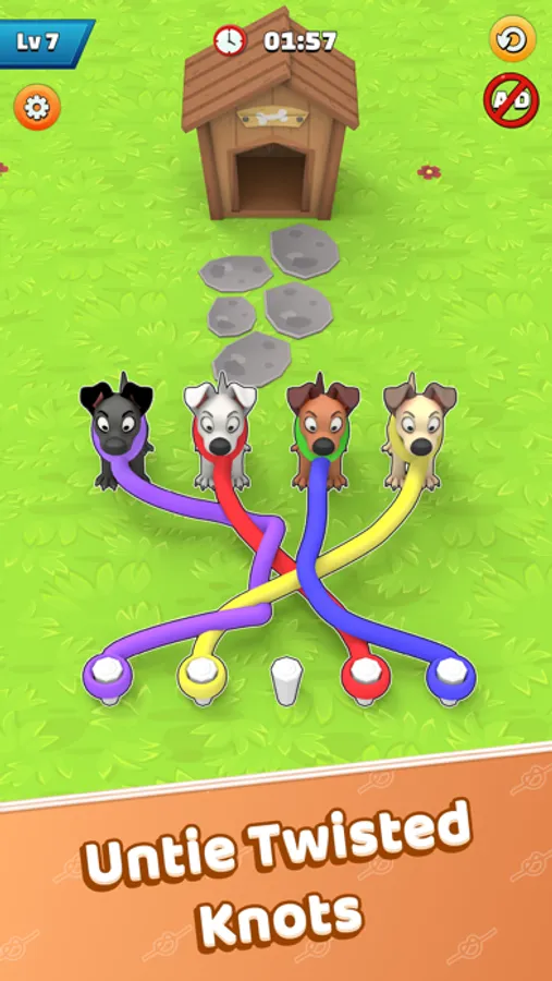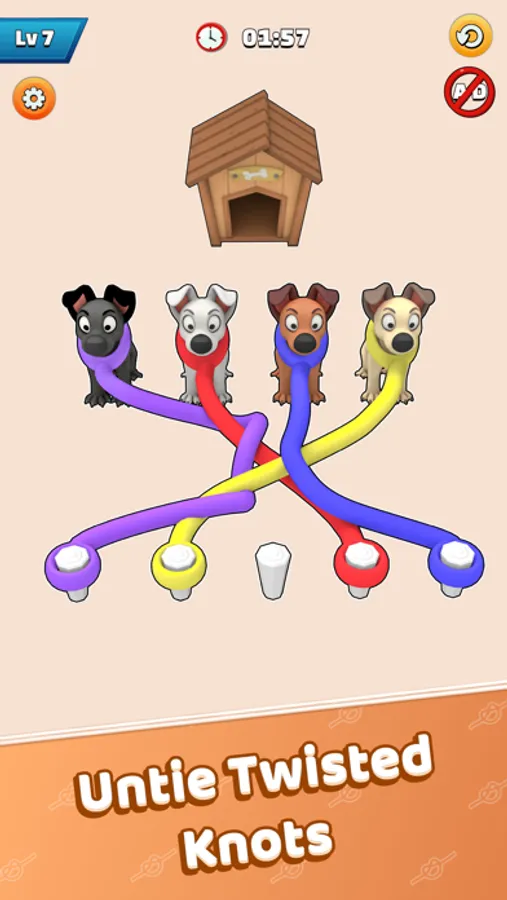 Twisted Straps – Save The Dog is tangled puzzle game where you untie the dog straps and send them back home. The game revolves around a unique tangled board of intersecting lines and various nodes. Each node connects to several lines, creating a complex network of paths for players to navigate. The objective of the game is to untangle the straps by rearranging the ropes until no lines cross each other, creating a clear and smooth path for the puppies.The game offers challenging and addictive gameplay experience, each level presents a new and unique puzzle, with varying numbers of dog straps. As players progress through the levels, the puzzles become increasingly complex, testing their ability to visualize and plan their moves strategically.Twisted Straps – Save The Dog features vibrant visuals, with colorful straps and cute puppies keeping you engaged throughout the game. In addition to its challenging puzzles, it offers players the opportunity to unlock achievements and rewards as they progress through the levels. These can include new theme designs, rare puppies, and other customizable options that allow players to personalize their gaming experience.Twisted Straps – Save The Dog provides a fresh and innovative twist on traditional untangling games, offering a unique and engaging experience that keeps players coming back for more. Whether you're looking for a quick and exciting challenge or a relaxing and meditative experience, Twisted Straps has something to offer for everyone.