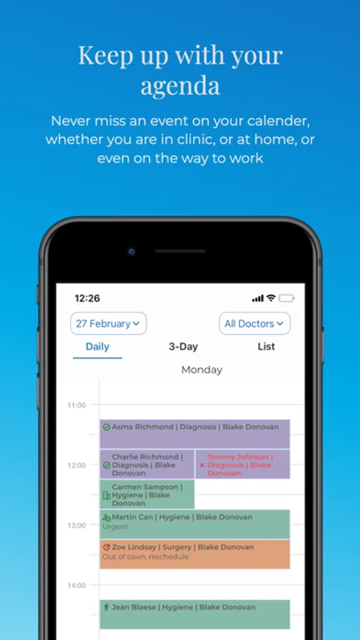 Anywhere you want, you can create a new patient record with just your phone or add reminder notes, visuals, or information to any patient profile. With the Smart Clinic Management System, everything about your clinic is in your pocket.
