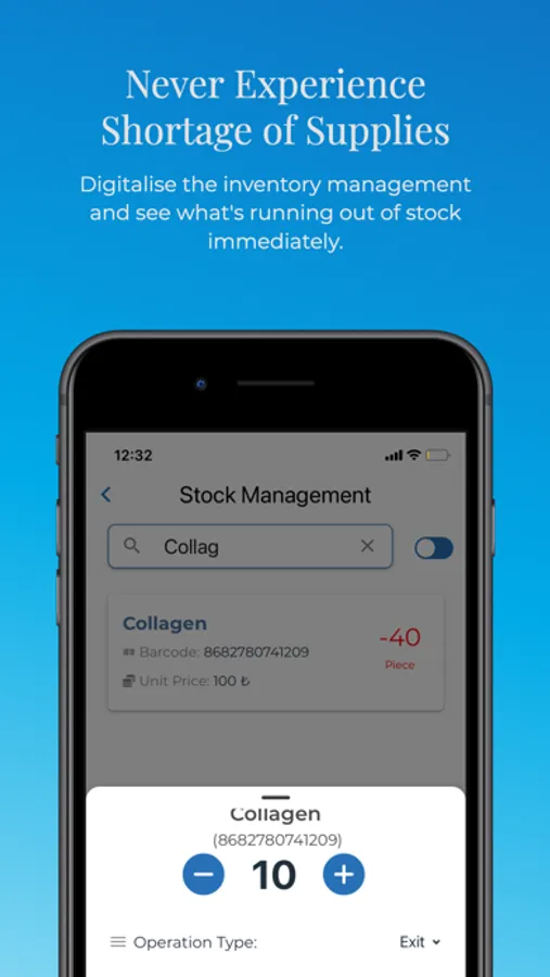 • Use the inventory module to scan barcodes and track products and inventory.